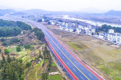 2018年1月1日,在鉛山縣河永快速通道(河口至永平)上,工人正在畫標(biāo)示線,這標(biāo)志著該快速通道即將建成通車。距離2016年11月底開工以來,13個(gè)月的時(shí)間的緊張施工,這條橫臥河口鎮(zhèn)至永平鎮(zhèn)之間,10分鐘僅能行駛完全程的美麗公路,終于就要向世人“見面”了。