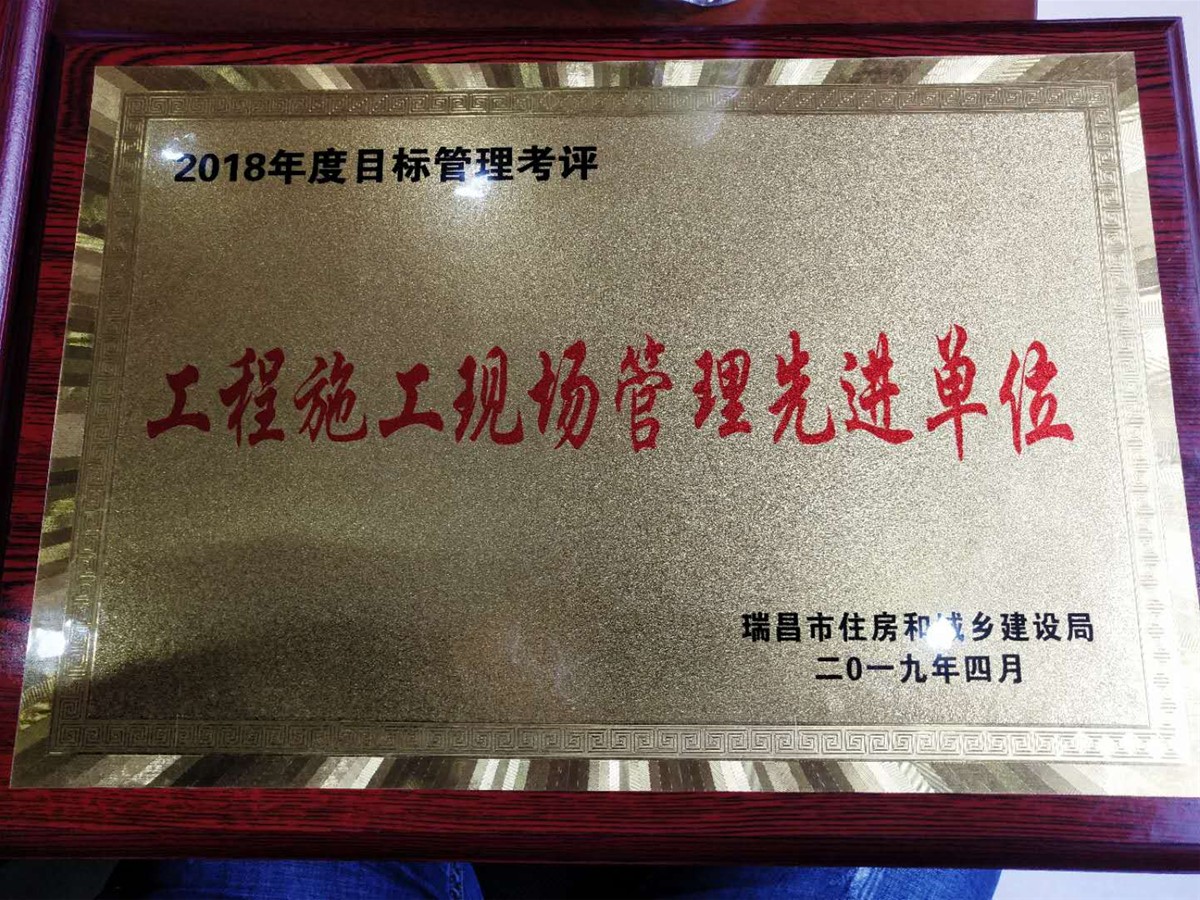 2019年4月16日,瑞昌市住建局為表?yè)P(yáng)先進(jìn)、樹立典型,進(jìn)一步激勵(lì)全局上下真抓實(shí)干、勇創(chuàng)佳績(jī),召開瑞昌市2019年住房城鄉(xiāng)建設(shè)工作會(huì),對(duì)2018年全局目標(biāo)考評(píng)先進(jìn)單位和先進(jìn)個(gè)人給予通報(bào)表?yè)P(yáng),我單位(華泰建設(shè)工程有限公司)喜獲“工程質(zhì)量管理先進(jìn)單位”、“工程施工現(xiàn)場(chǎng)管理先進(jìn)單位”。
