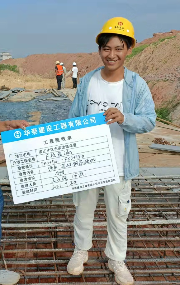 上饒濱江水系改造項(xiàng)目是華泰建設(shè)承建的市政項(xiàng)目之一,該項(xiàng)目工期緊、任務(wù)重,黃志偉作為箱涵施工的新人,工作一絲不茍,兢兢業(yè)業(yè),他堅(jiān)信敢于嘗試、敢于糾正錯(cuò)誤成功就會(huì)在眼前。所以他總是追著前輩們?cè)儐?wèn)箱涵施工重難點(diǎn)問(wèn)題,在實(shí)際施工前解決問(wèn)題、規(guī)避風(fēng)險(xiǎn)。