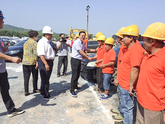 上圖是縣委副書記、縣長危巖,縣人大常委會(huì)主任陳曉琴在現(xiàn)場(chǎng)慰問建設(shè)工人。