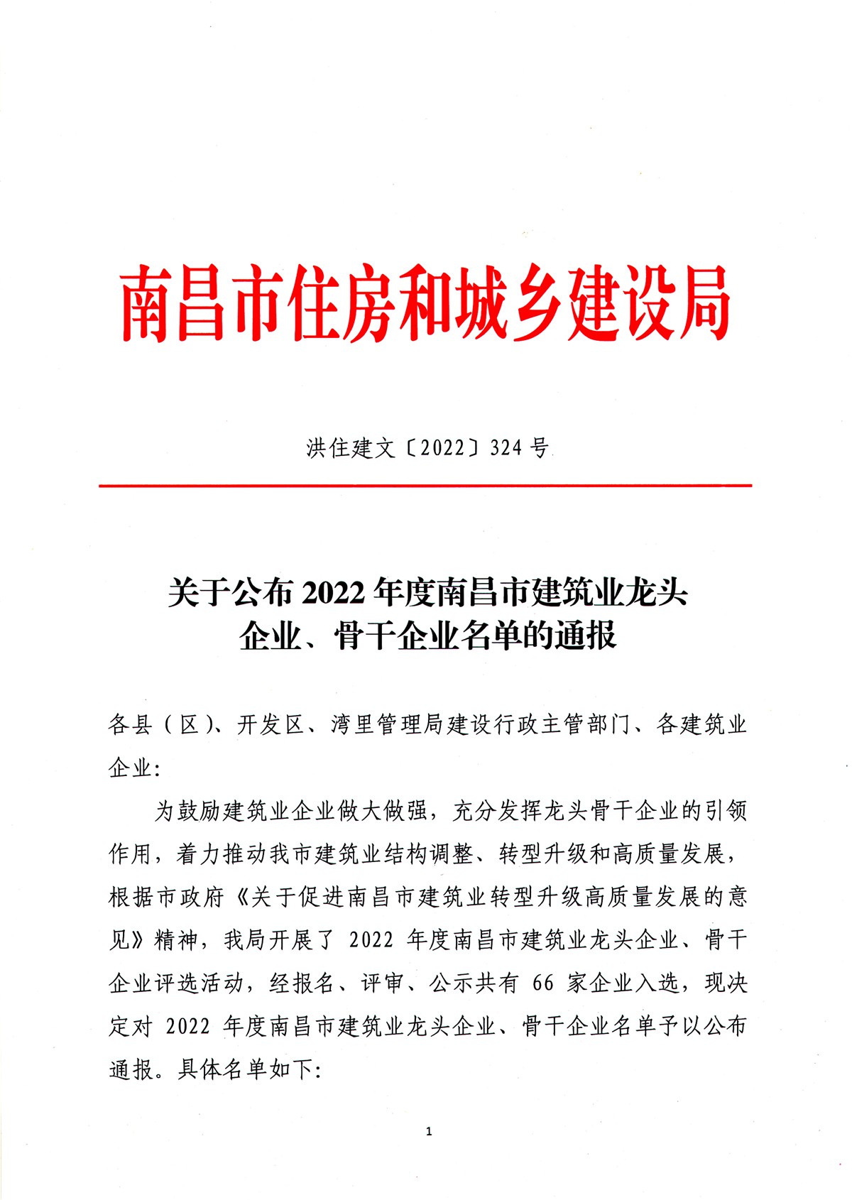 近日,我市住房和城鄉(xiāng)建設(shè)局組織開展的2022年度南昌市建筑業(yè)龍頭企業(yè)、骨干企業(yè)的評選活動落下帷幕。通過企業(yè)資質(zhì)、產(chǎn)值稅收、質(zhì)量安全、獎勵表彰、科技創(chuàng)新、經(jīng)營管理、社會責(zé)任等多方面評比,華泰建設(shè)工程有限公司憑借優(yōu)異的綜合實(shí)力獲評“2022年度南昌市建筑業(yè)骨干企業(yè)”榮譽(yù)稱號。