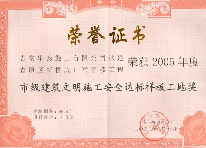 青原區(qū)坑口寫字樓榮獲市級安全達(dá)標(biāo)樣板工地獎