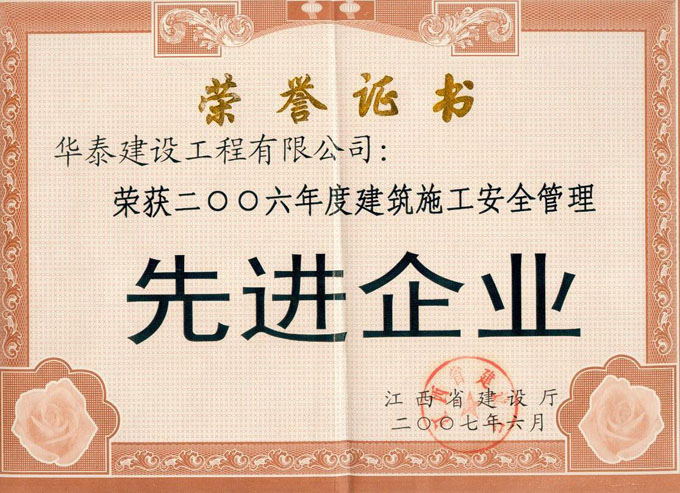 榮獲2006年度建筑施工安全管理先進(jìn)企業(yè)獎(jiǎng)