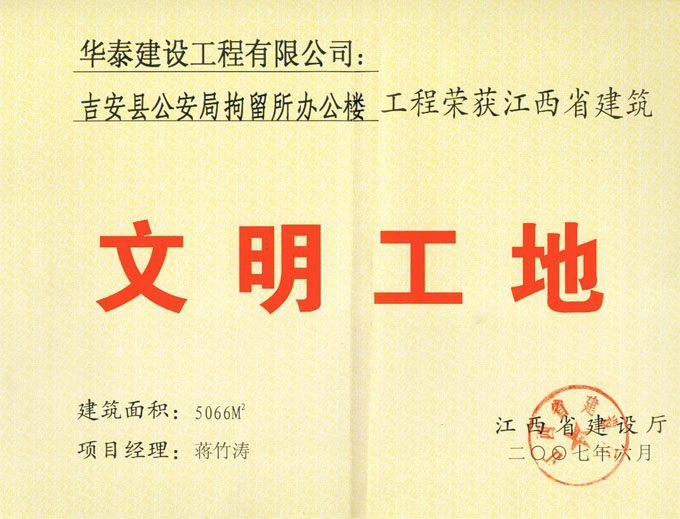 吉安縣公安局拘留所辦公樓榮獲省文明工地獎