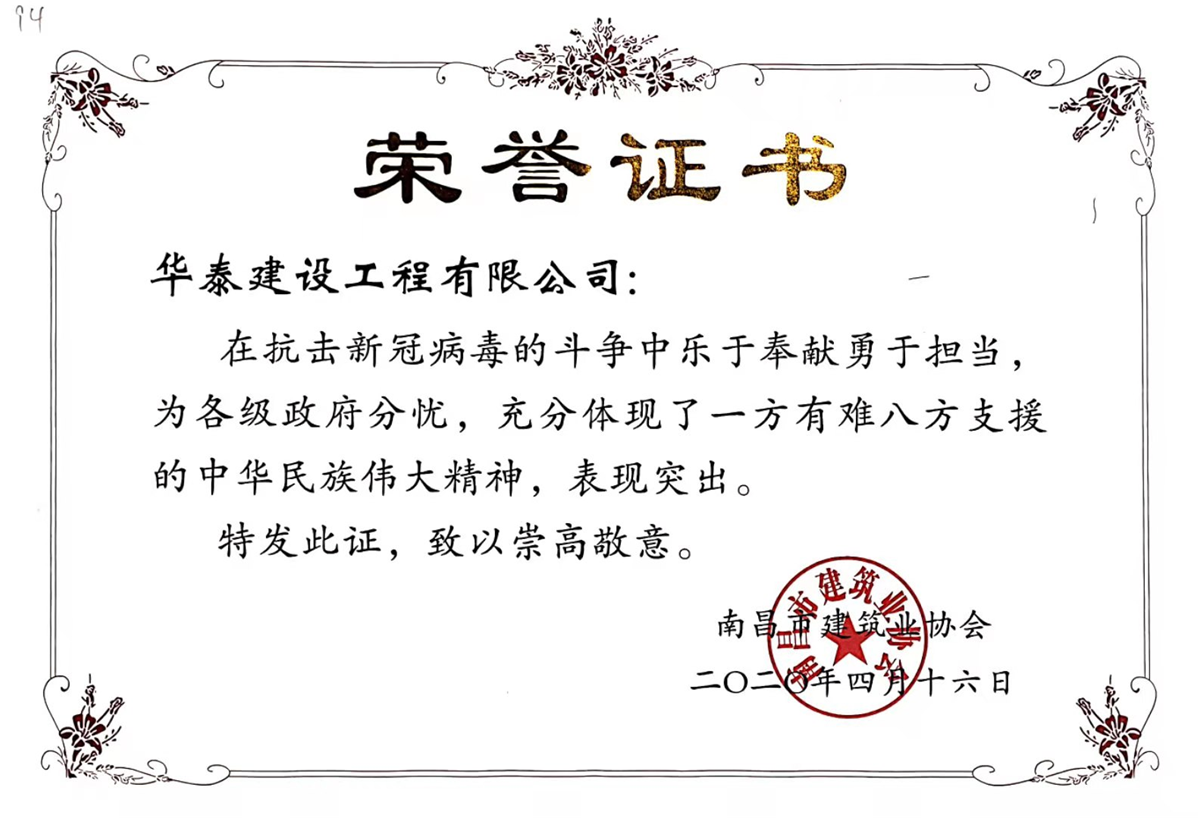 榮獲2020年抗擊疫情榮譽(yù)證書