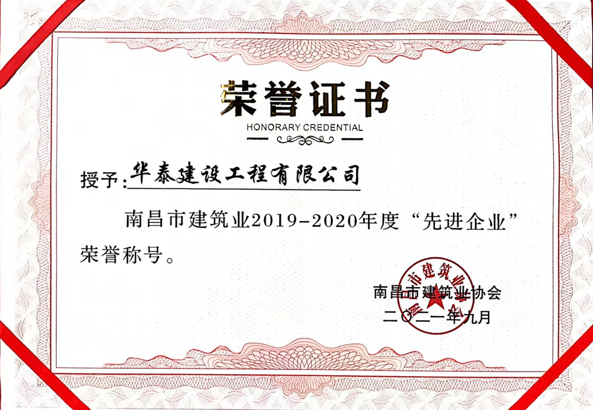 榮獲2019-2020年度南昌市建筑業(yè)先進(jìn)企業(yè)